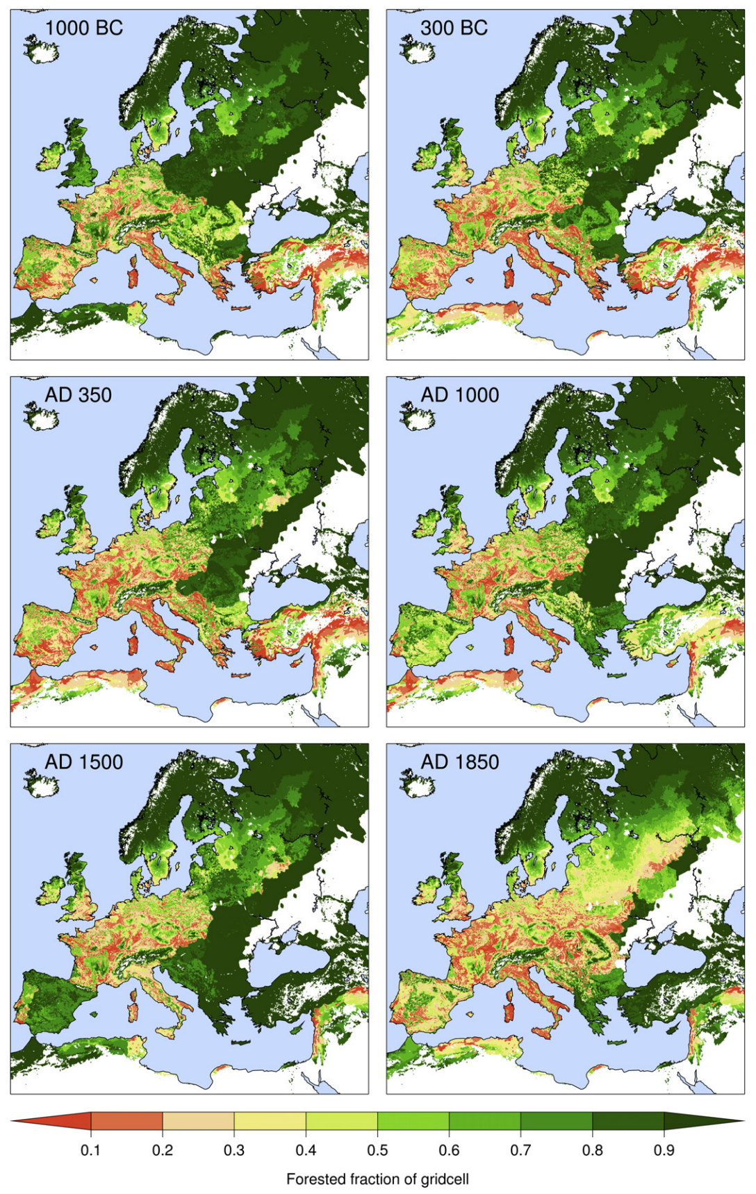 1000 years ago (um...very roughly, ask a historian if you want a better number) people were actively and aggressively deforesting the UK, which has completely transformed our landscape.