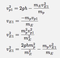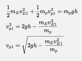 This is what you get if you assume the velocity of the Earth is super small from above. Ok, I am going to put these two equations (momentum and energy) together. This looks bad, but it really isn't too bad. The problem is the velocity of the people from the work-energy method still has the velocity of the Earth. Avert your eyes if you are algebra-allergic.