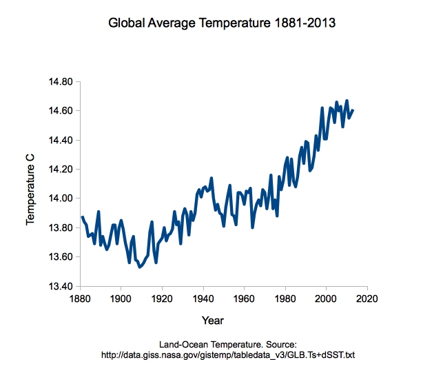 Using these data I made this handy graphic showing "surface temperatures" (air and sea surface) over time from 1881 to the present.