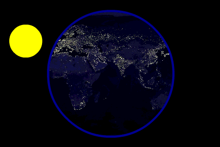 Could this really be true? Could the Sun really be affecting us at the darkest part of the night, impeding our ability to see the stars but allowing us to see the land around us? Here's how: imagine floating in space on the far side of the Earth, away from the Sun. What would you see as the Earth appeared to move between you and the Sun? (Pay close attention to the atmosphere, courtesy of NASA.)