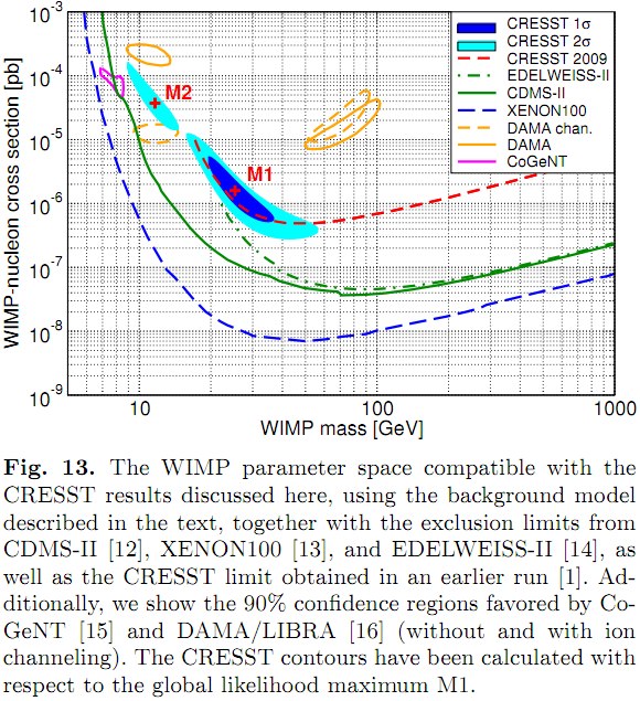 In the meantime, a number of teams, including DAMA, CoGeNT, and CRESST all claim to have detected dark matter recoiling with normal matter. And we know they're not entirely correct.