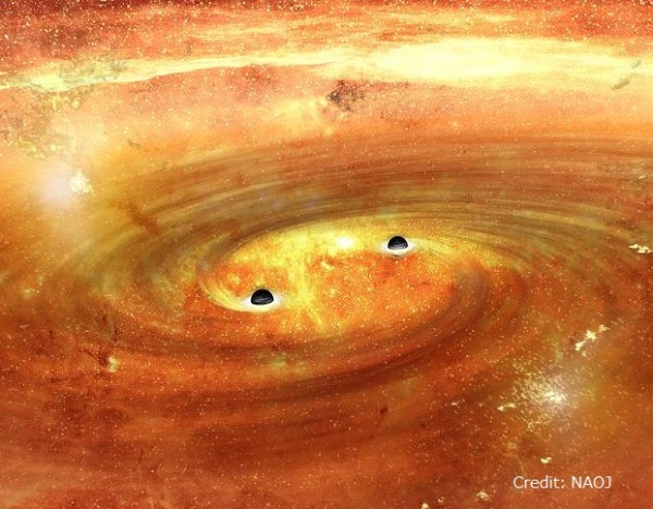 Wow, I thought the supermassive black holes were just the first in the bunch, who got lucky to eat all neighbouring matter and grew to enourmous scales. I can't picture two black holes merging, what would it seems like?