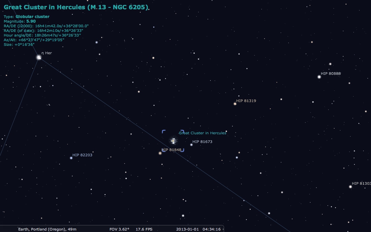 So enjoy Messier 13, one of the brightest and most spectacular objects in the night sky, and the perfect way to usher in the new year of 2013!