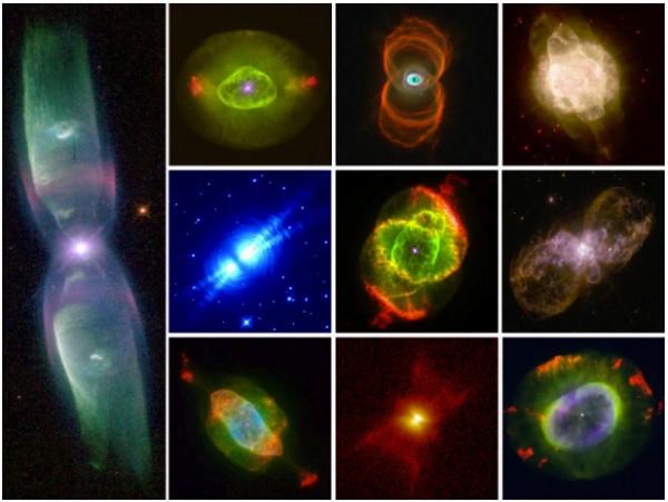Only about 20% of the planetary nebulae we've discovered are roughly spherical; the other 80% eject a large amount of their matter in two opposing directions, and take on a more axisymmetric shape.