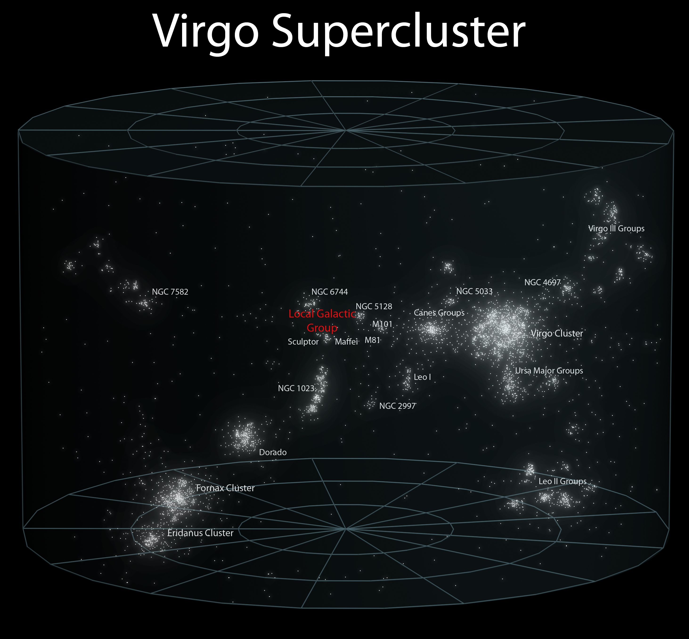 Let's remind ourselves what the Virgo Cluster is, to get a sense of what we're looking into when we're seeing this object. A collection of more than 1,000 large galaxies, the Virgo Cluster literally dwarfs all the other, smaller clusters and groups within 50 million light-years of our Milky Way.