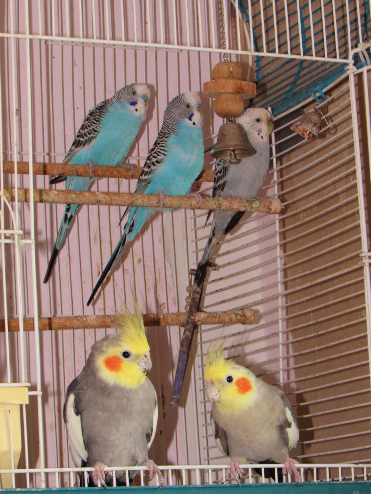 Image credit: animal lover VeganMom, via http://veganmom.blogspot.com/2014/06/more-changes-good-and-bad-to-our.h…. These are not Claud's parakeets, but simply some outstanding specimens of these delightful birds!