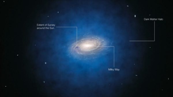 Image credit: ESO/L. Calçada, of the illustration of the dark matter halo surrounding the luminous disk of our galaxy.