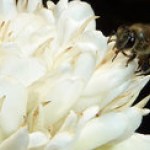 Honeybee visiting a coffee flower, photo from Geraldine Wright