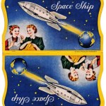 I find this 1950s-era needle book cover fascinating, because it mixes the stereotypically female activity of sewing with the stereotypically male interest in space travel. What is the connection here? Are these young women sewing spacesuits? Are they inspired by/chatting about the excitement of rocket science? Is there any tenuously plausible connection that can be made between a space ship named "The Moon" and sewing needles, other than that they are both silver?